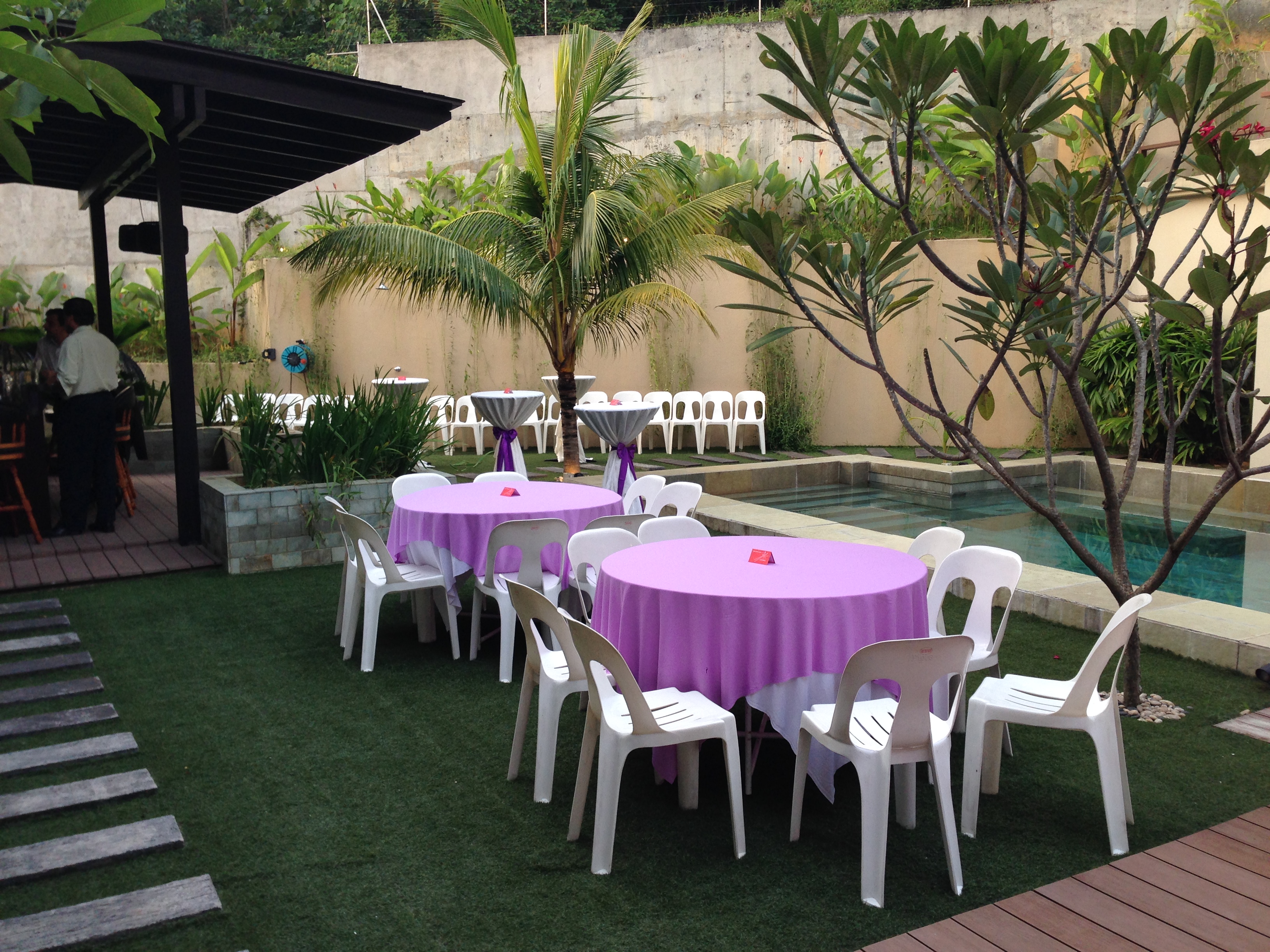 We are also specially providing Star Tent (from 4.5m high) and Pop-Up Tent (3.5m high) for our customer. All are air-conditioned and with clear walls. Beautiful and elegant goes perfectly for any functions from small home parties to big wedding events. Also, we offer beautiful Chiavari white chairs and would decorate the space according to your theme upon request.